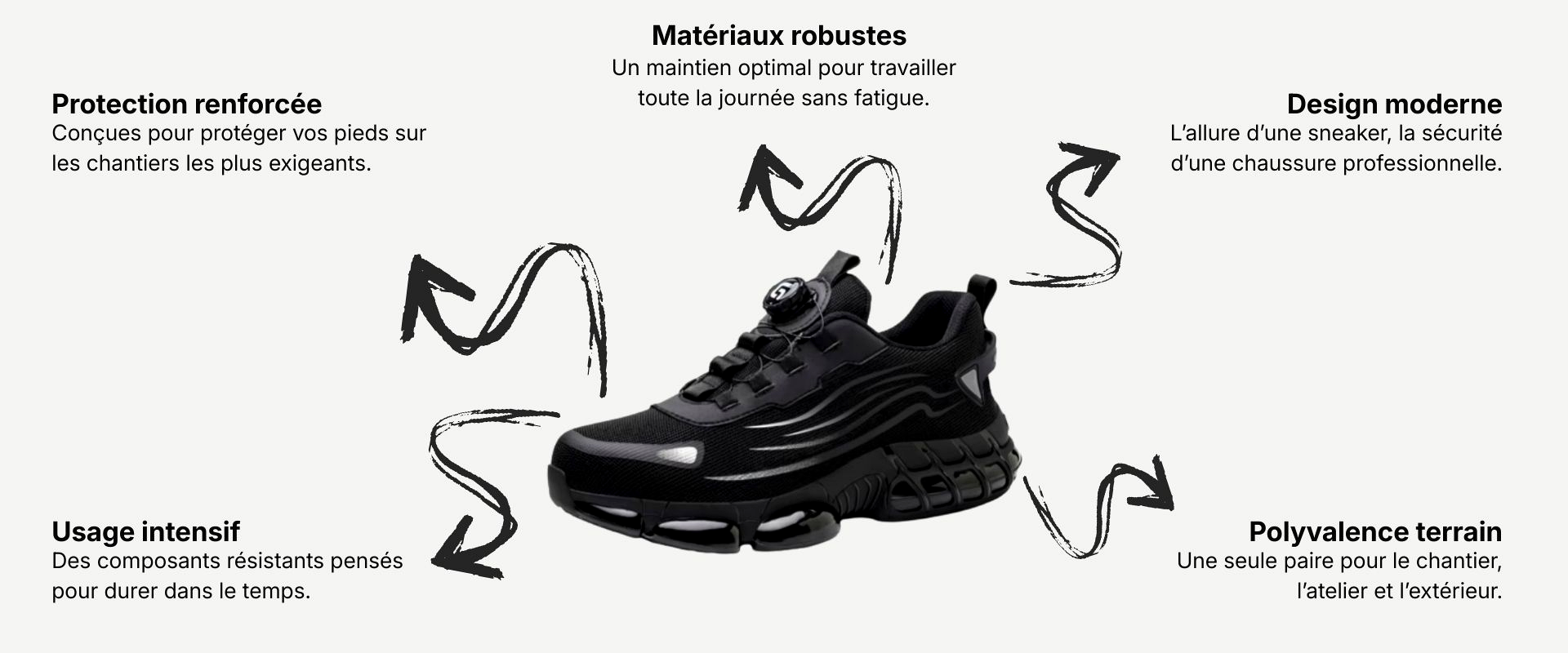Passer aux sneakers de sécurité, ce n’est pas changer de chaussures. C’est changer de rythme, de puissance et d’état d’esprit. Le chantier est un combat. Choisissez l’équipement qui vous fait gagner.