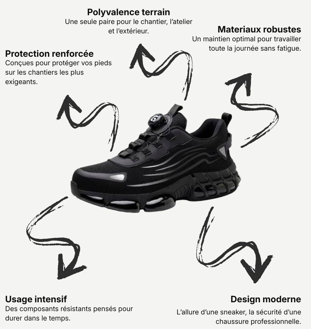 Travaillez plus longtemps, plus confortablement et avec une confiance totale.Cette sneaker de sécurité nouvelle génération a été conçue pour les professionnels qui exigent performance, protection et style, sans compromis.